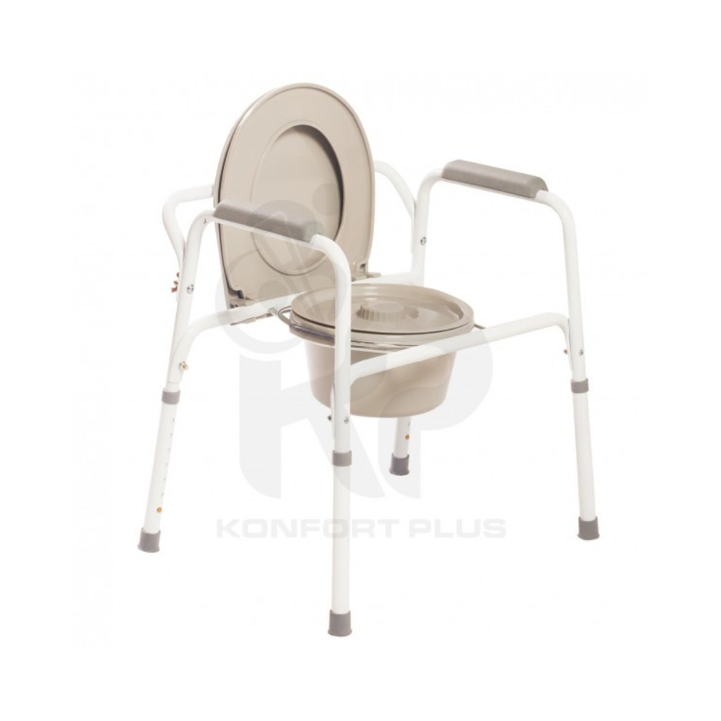 Fabricado en aluminio ligero con acabado anodizado natural, esta ayuda sanitaria sin ruedas cuenta con un diseño plegable que proporciona estabilidad y seguridad al usuario.